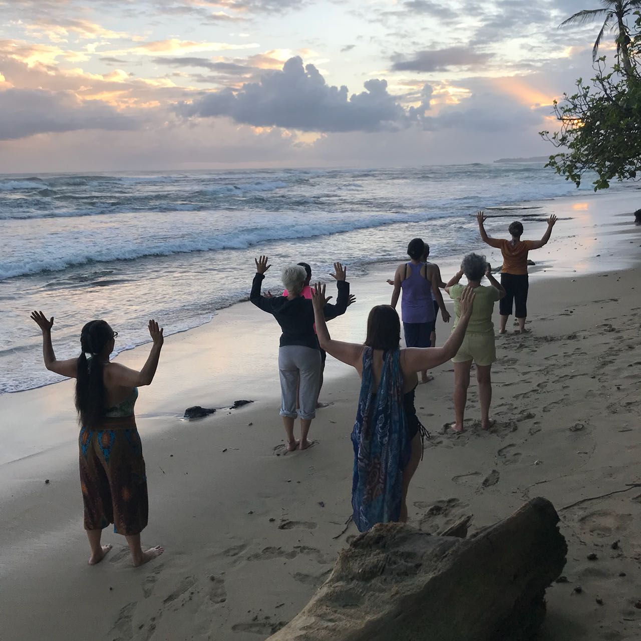 - Sungazing sunrise meditation at the beach